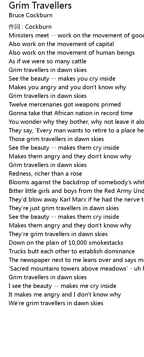 | ' Sacred mountains towers above meadows' uh huh and above us | |