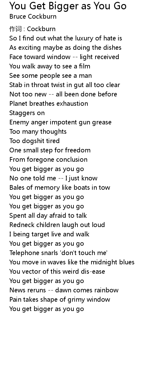 | Song | You Get Bigger as You Go |