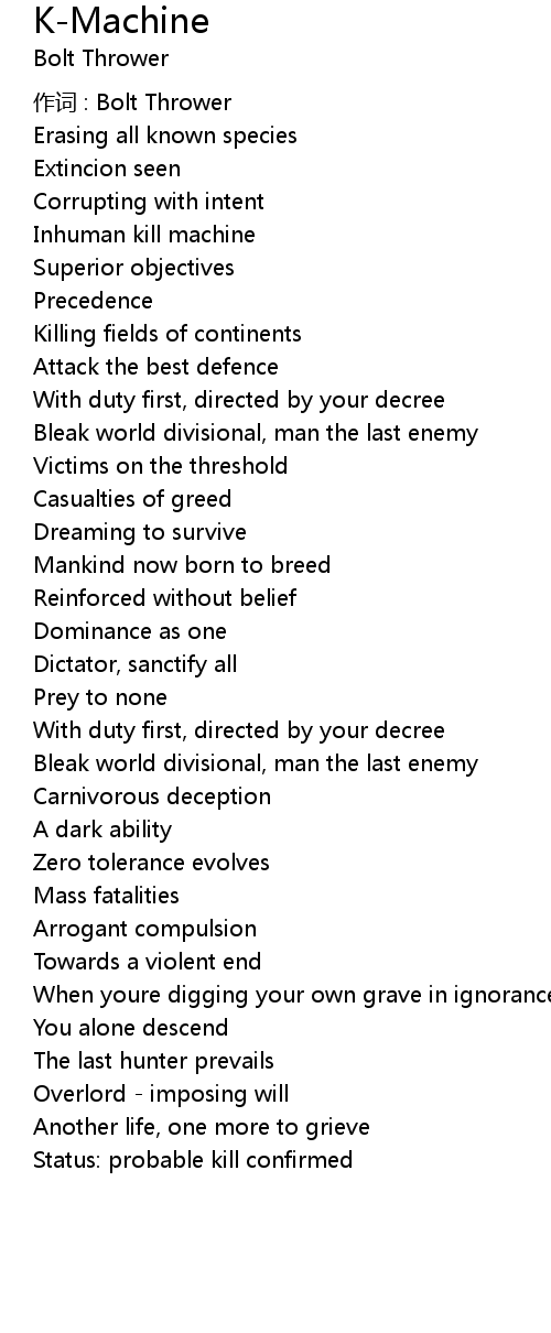 | 作词 : Bolt Thrower | |