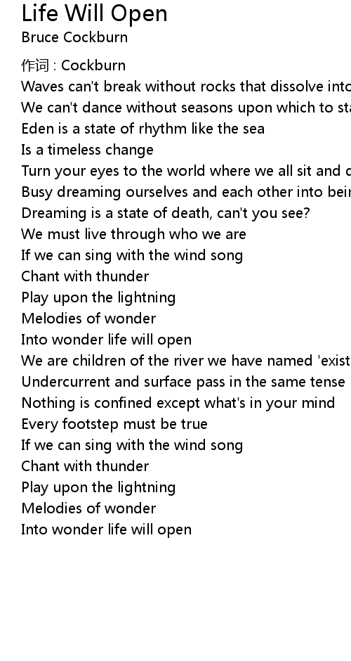 | Into wonder life will open | |