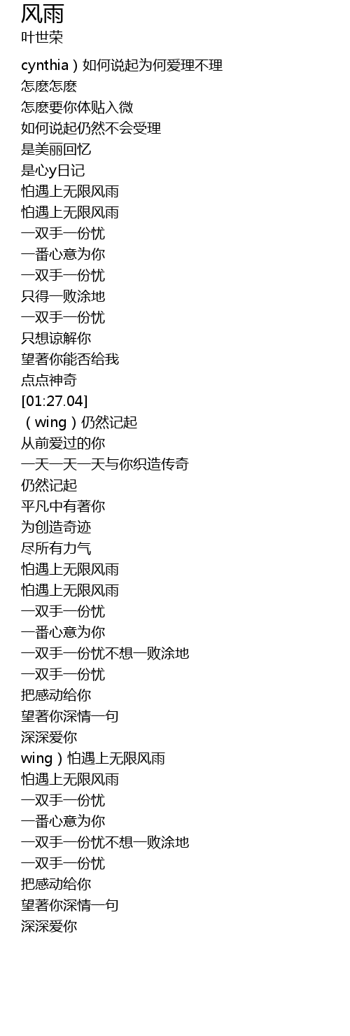 | [02:32.88] | wing)怕遇上无限风雨 |