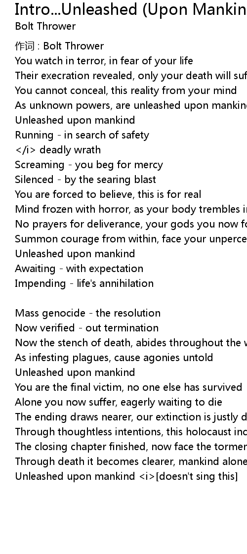 | Unleashed upon mankind <i>[doesn't sing this] |