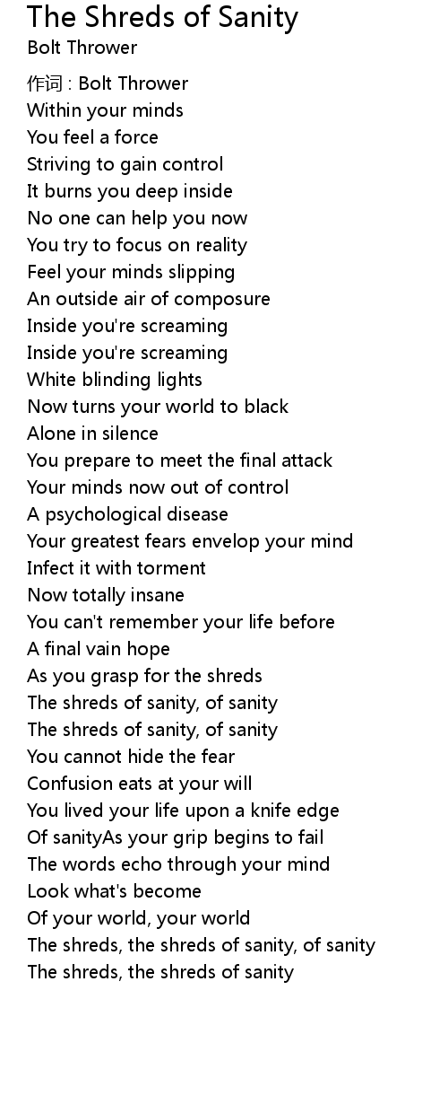 | The shreds of sanity, of sanity | |