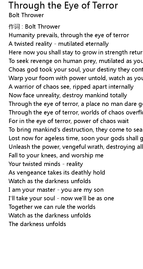 | Unleash the power, vengeful wrath, destroying all within its path | |
