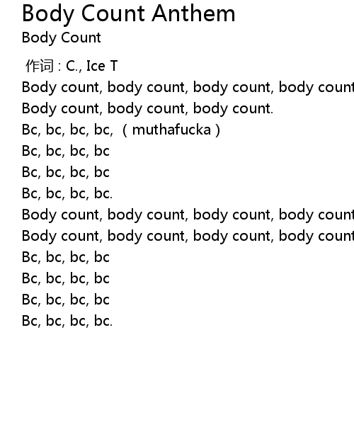 | [00:54.21] | Body count, body count, body count, body count |