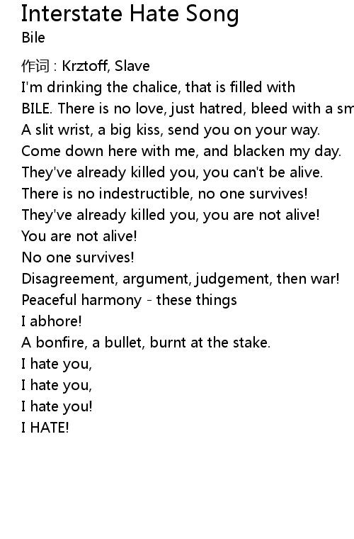 | BILE. There is no love, just hatred, bleed with a smile. | |