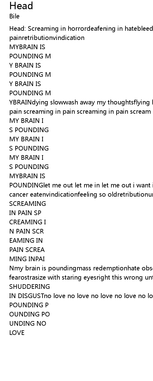 | Head: Screaming in horrordeafening in hatebleeding with fearwrithing in painretributionvindication | |