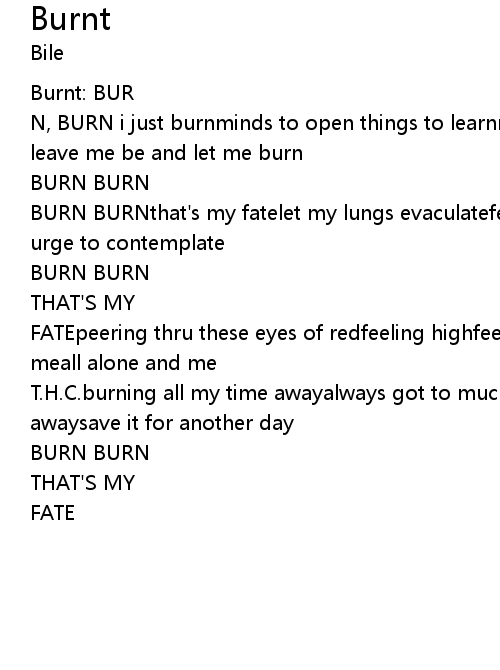 | BURN BURNthat's my fatelet my lungs evaculatefeel no lovefeeling hatefeel no urge to contemplate | |
