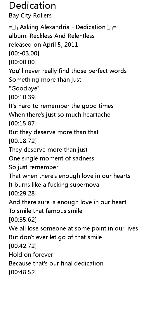 | [00:-06.00] | wàn Asking Alexandria Dedication wàn |