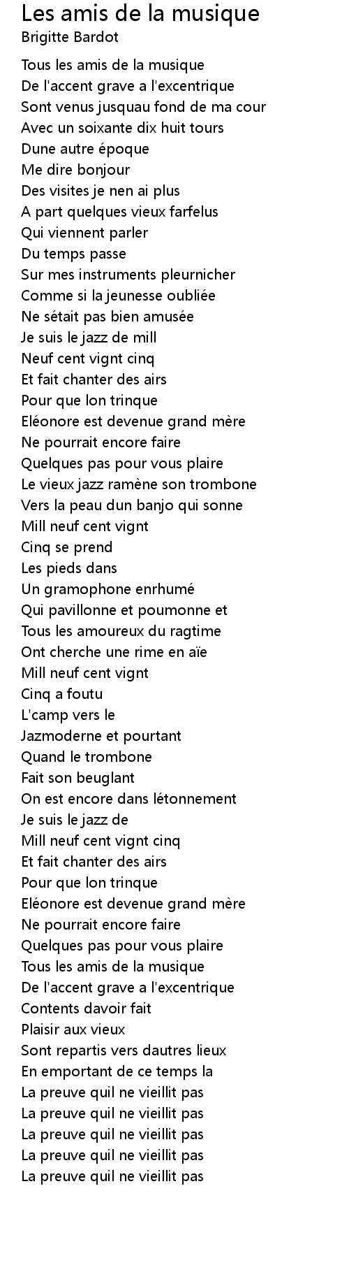 | Song | Les amis de la musique |