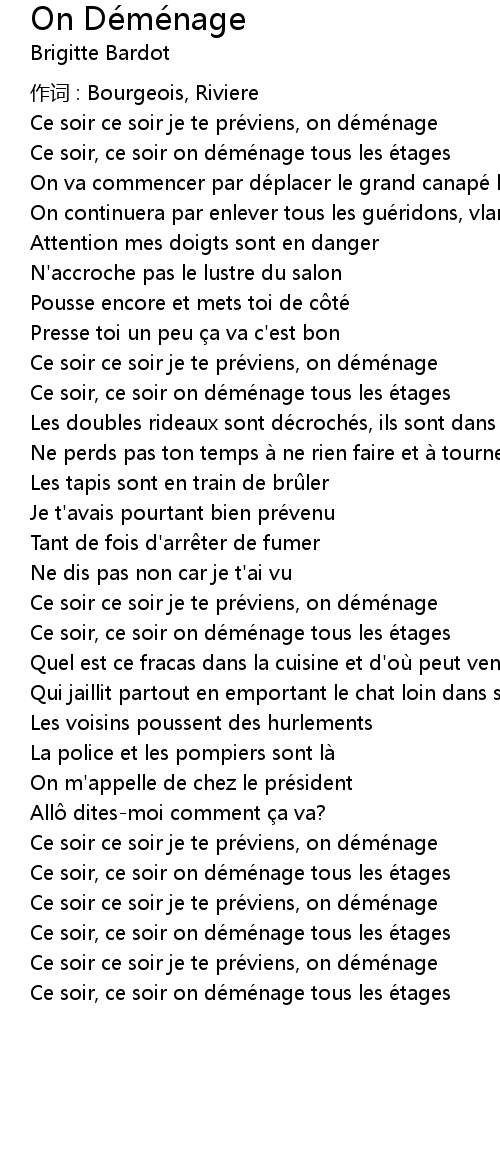 | Ce soir, ce soir on dé mé nage tous les é tages | |