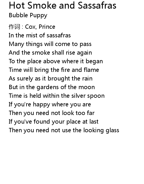| Song | Hot Smoke and Sassafras |