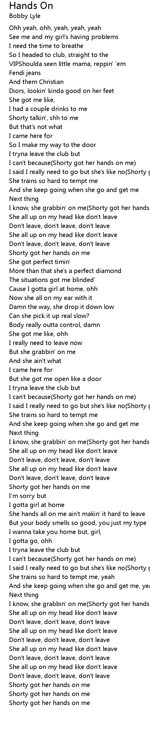 I know, she grabbin' on me(Shorty got her hands on me) |