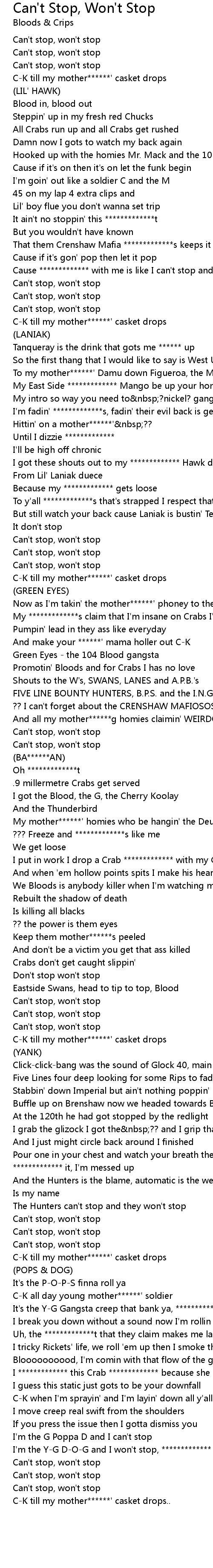 I'm the Y-G D-O-G and I won't stop, ************* the Crabs |