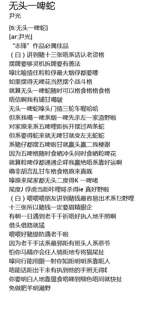 | [00:56.383] | 但系要得蛇来就无啤甘就变左无蛇蛇 |