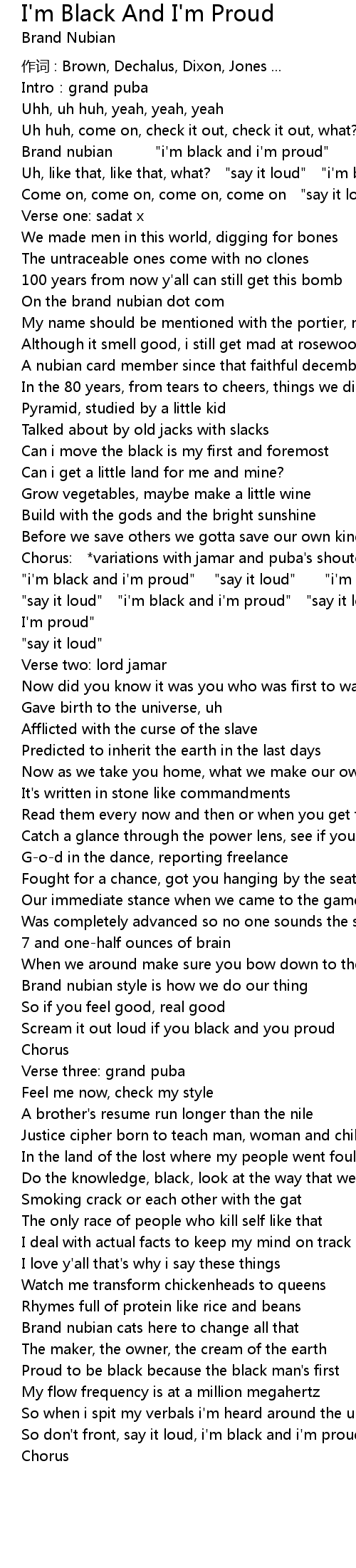 | " i' m black and i' m proud" " say it loud" " i' m black and i' m proud" | |