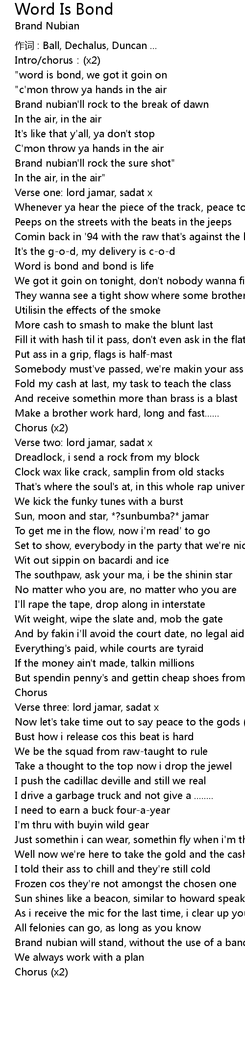 | Song | Word Is Bond |