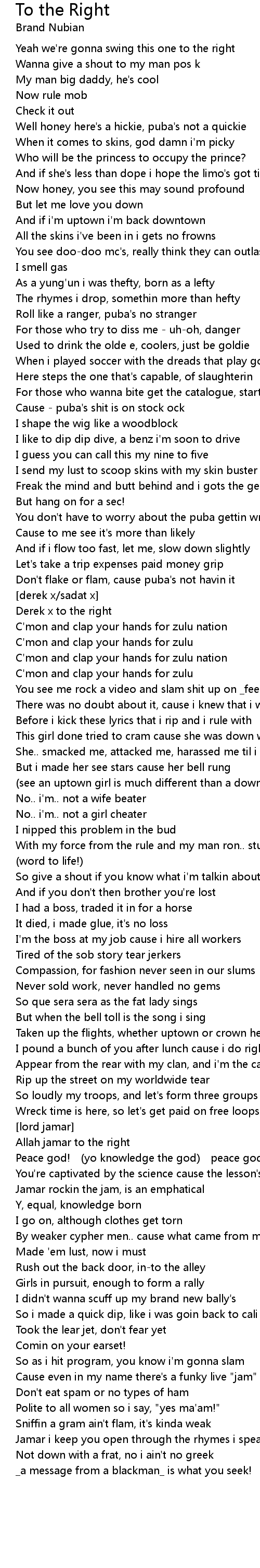 | C' mon and clap your hands for zulu nation | |