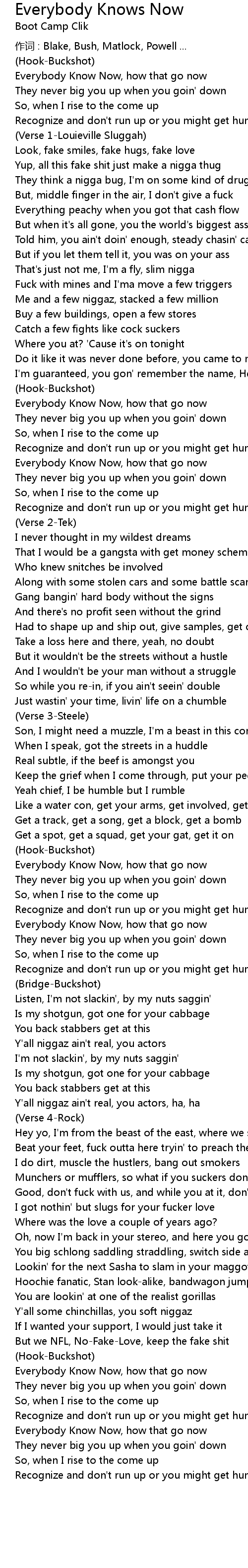 | Everybody Know Now, how that go now | |