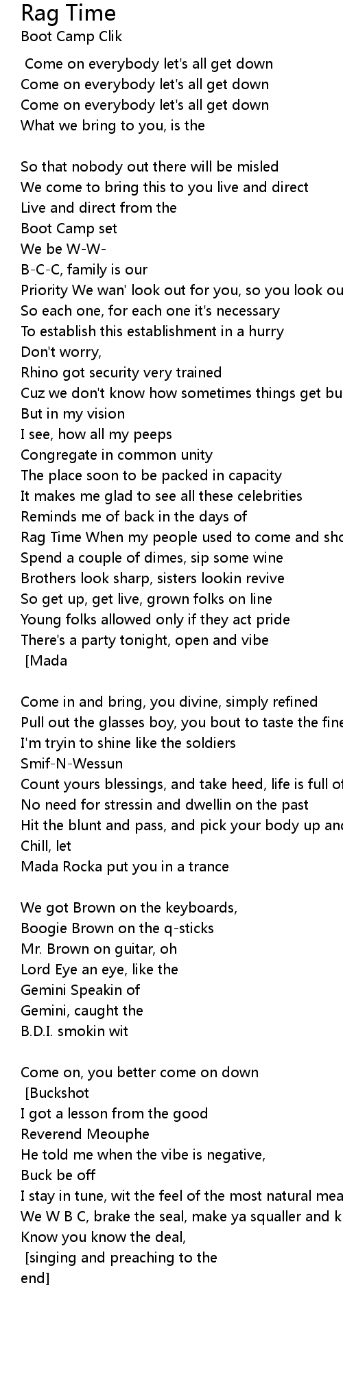 Rag Time you better come down for real [Chorus] [singing and preaching to the end] |