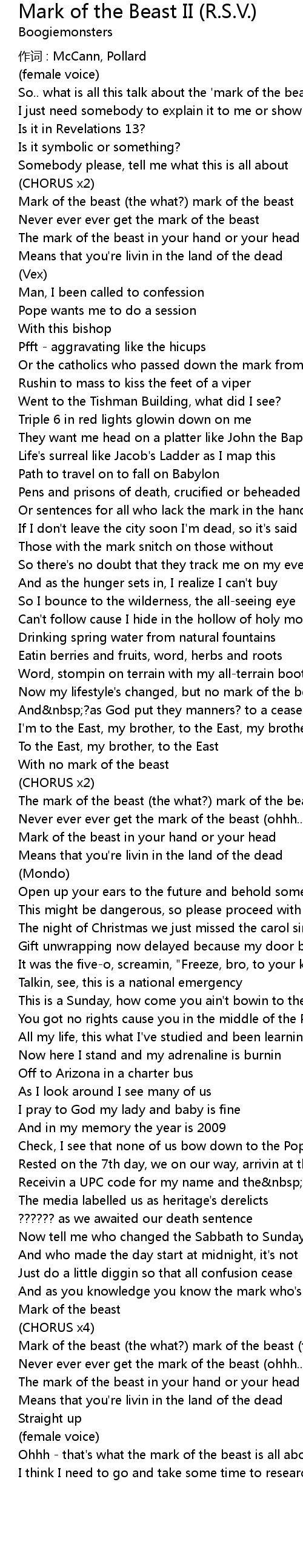 | Mark of the beast (the what?) mark of the beast (the what?) | |
