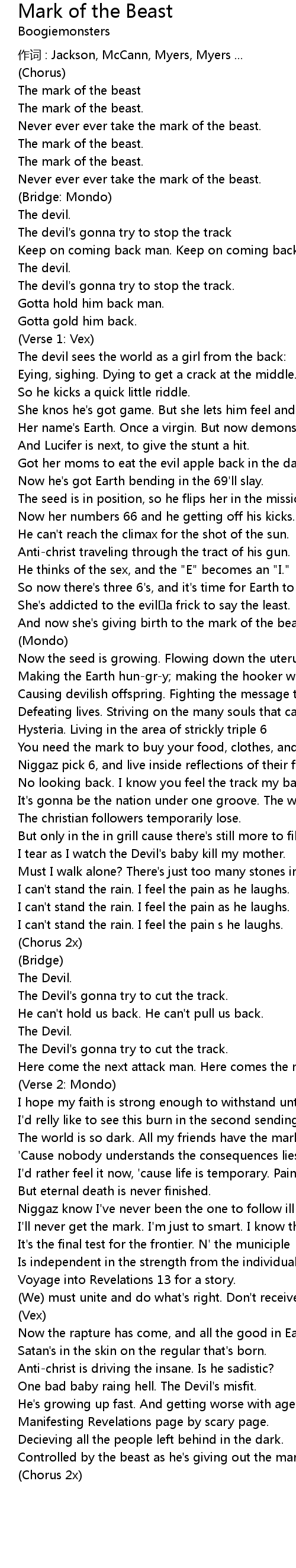 | Causing devilish offspring. Fighting the message that we bring. | |