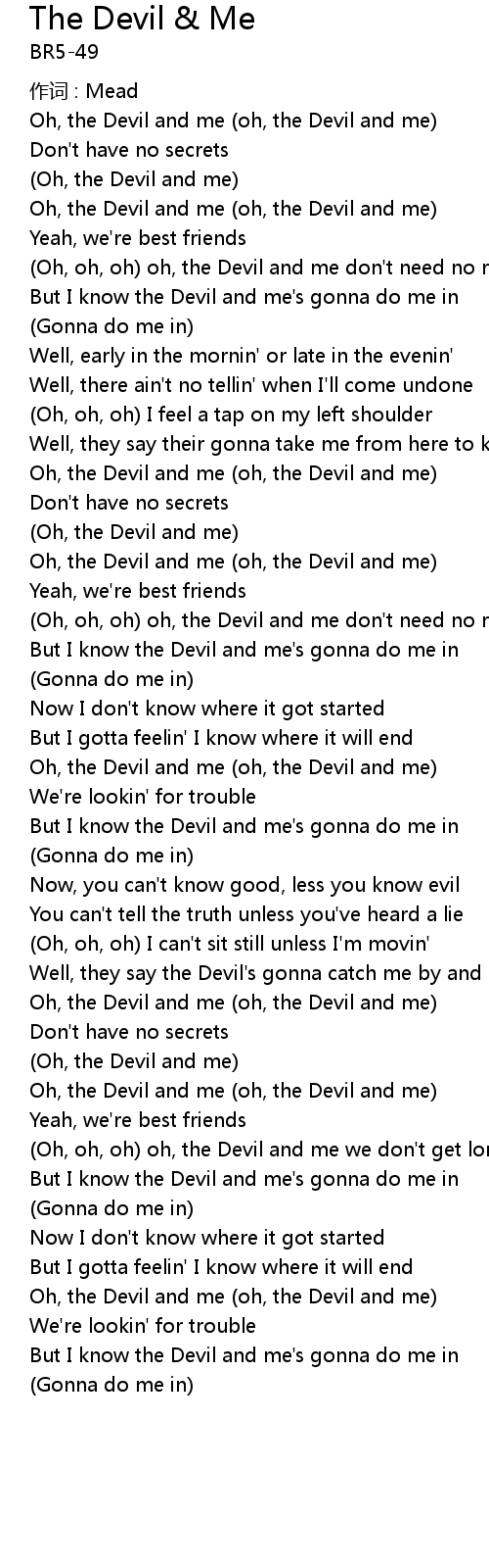 | Oh, the Devil and me (oh, the Devil and me) | |