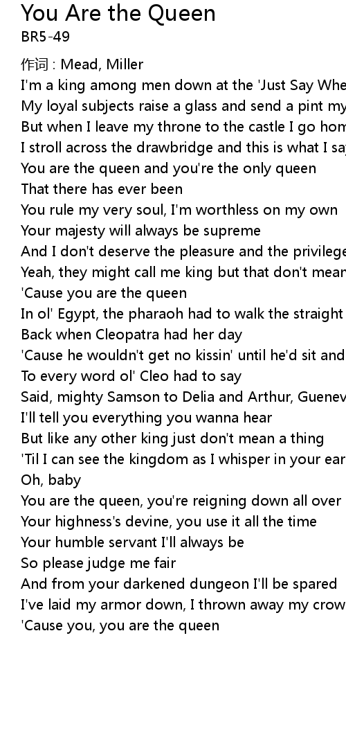| ' Cause you are the queen | |