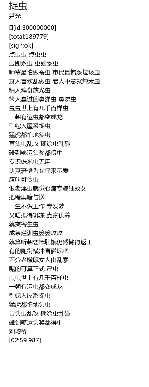 | [00:55.43] | 盲头虫乱攻 糊涂虫乱碰 |
