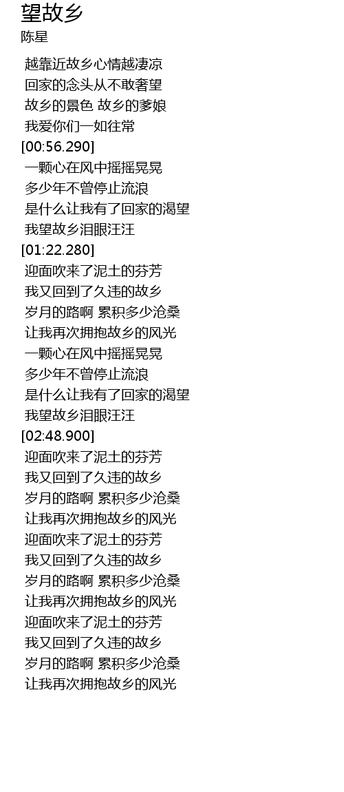 | [02:42.950] | 我望故乡泪眼汪汪 |