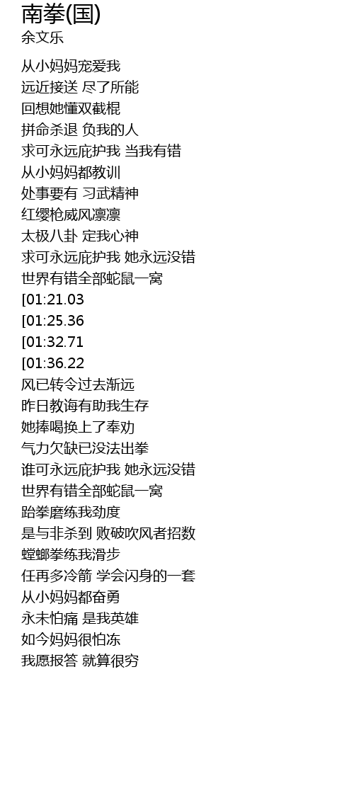 | [02:42.26][01:32.71] | 洪拳磨练我力度 |