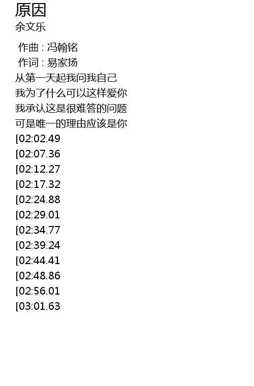 | [01:24.48][02:44.41][03:36.74] | ài nǐ yǒu yī wàn gè yuán yīn |
