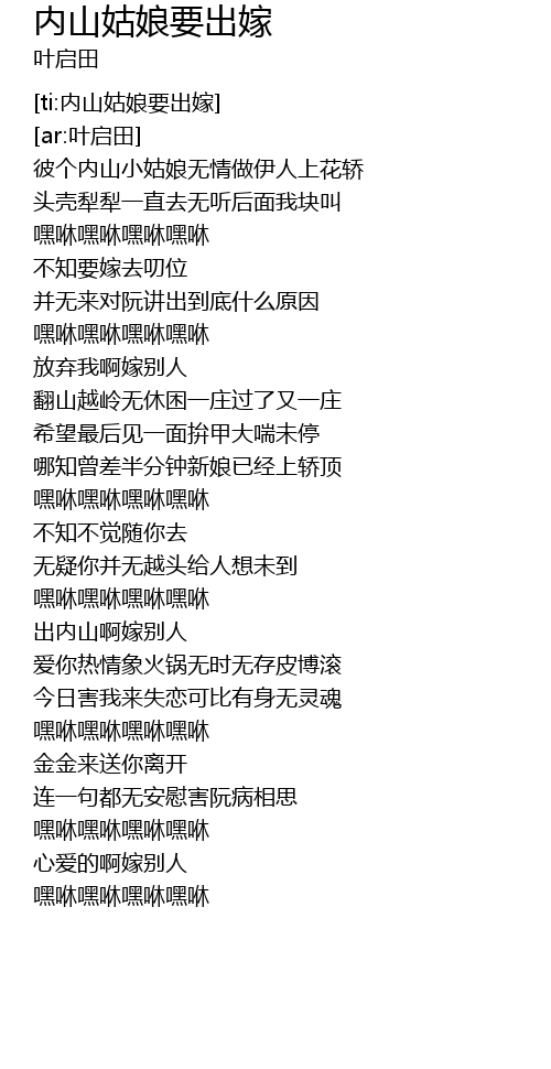 | [00:35.701] | 彼个内山小姑娘无情做伊人上花轿 |
