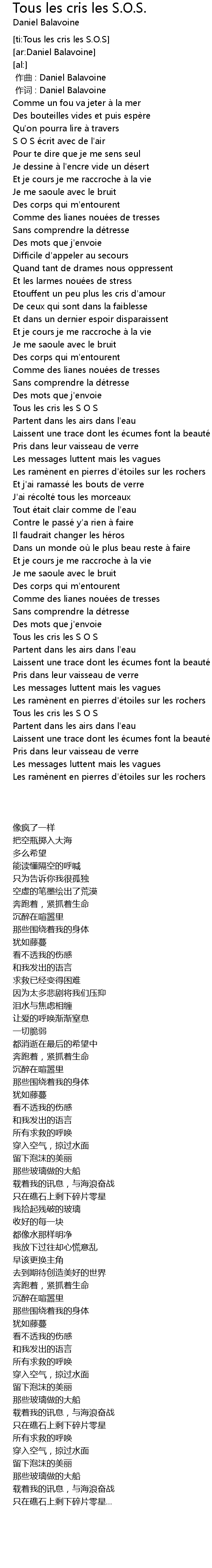 | [ti:Tous les cris les S.O.S] | |