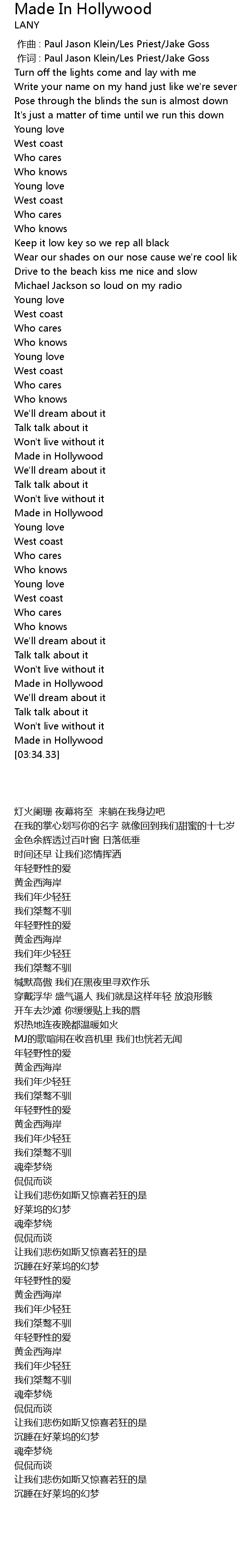 | [03:31.54] | Made in Hollywood |