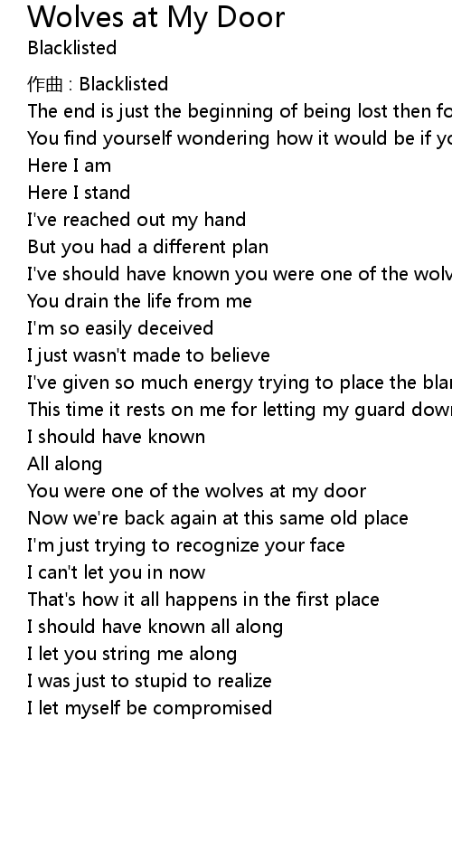 | I've should have known you were one of the wolves at my door | |