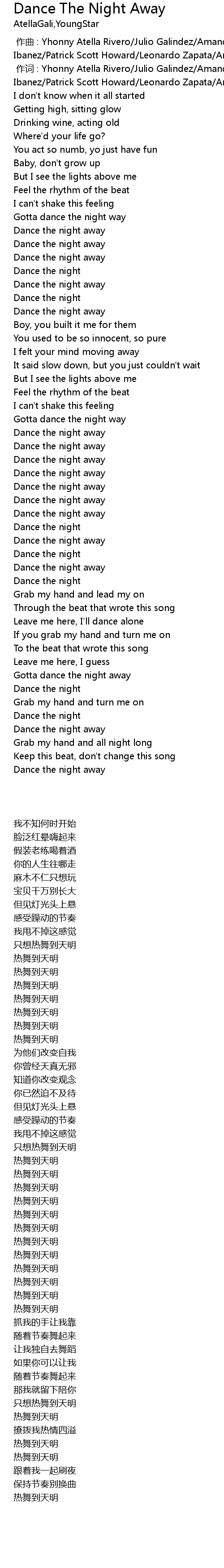 | [00:01.000] | 作词 : Yhonny Atella Rivero/Julio Galindez/Amanda Renee Ibanez/Patrick Scott Howard/Leonardo Zapata/Andres Saavedra |