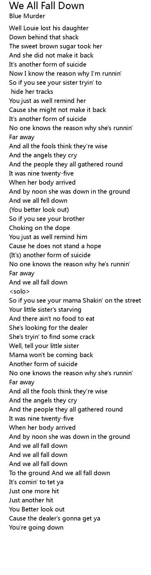 We All Fall Down Lyrics