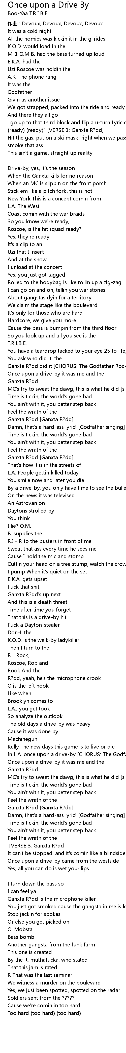 | Song | Once upon a Drive By |