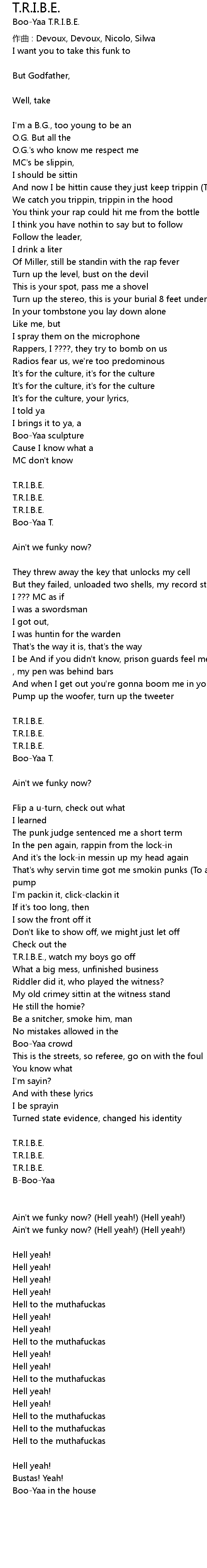 | T. R. I. B. E., watch my boys go off | |