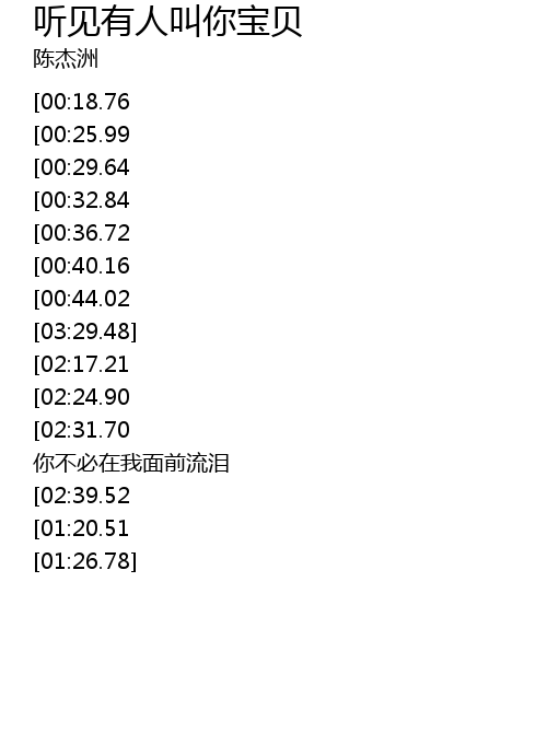 | [03:08.86][02:39.52][01:11.58] | yīn wèi wǒ míng míng tīng jiàn yǒu rén jiào nǐ bǎo bèi |