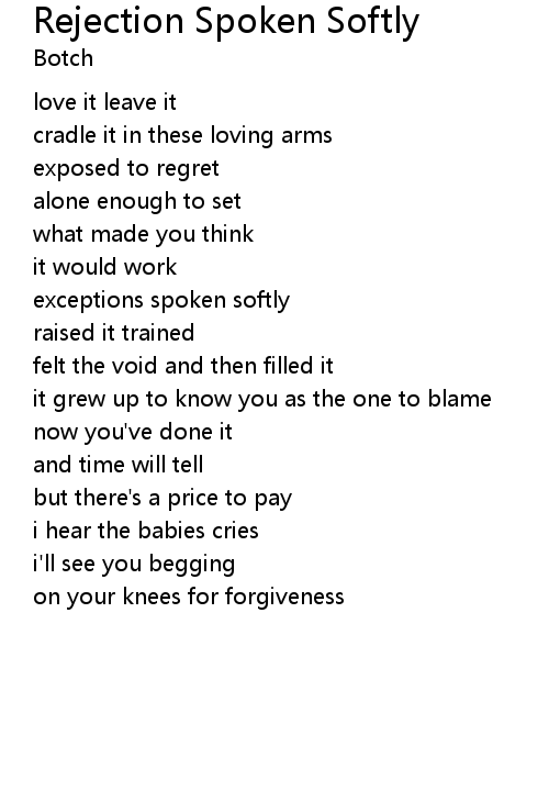| Song | Rejection Spoken Softly |