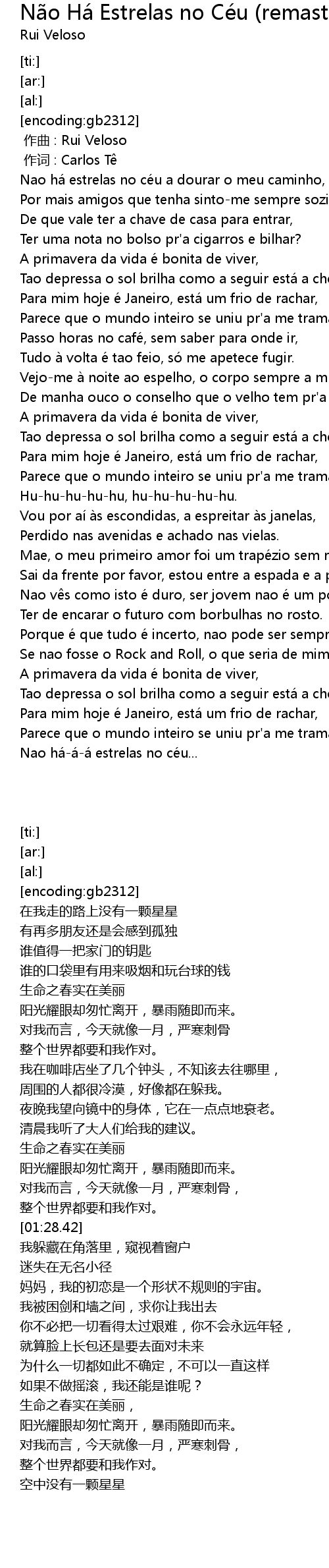 | [02:50.02] | Nao ha a a estrelas no ce u... |