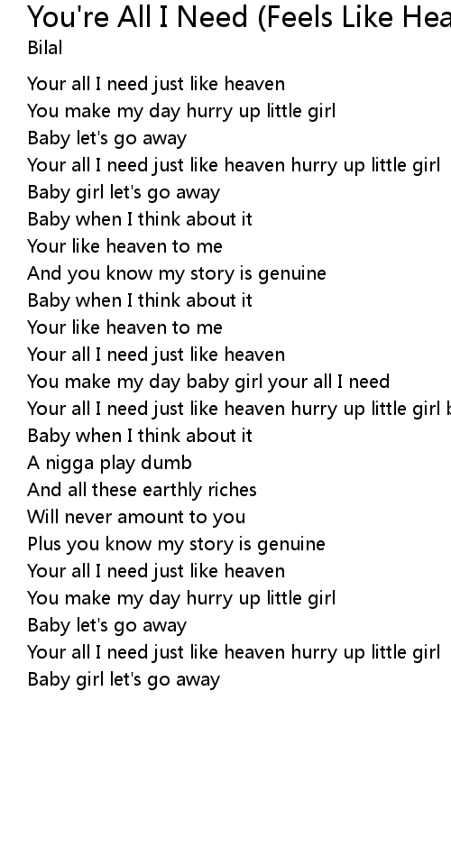 Your all I need just like heaven hurry up little girl baby girl let's go away