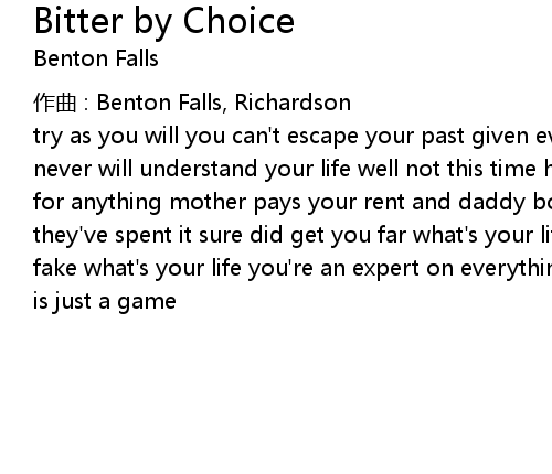 | Song | Bitter by Choice |