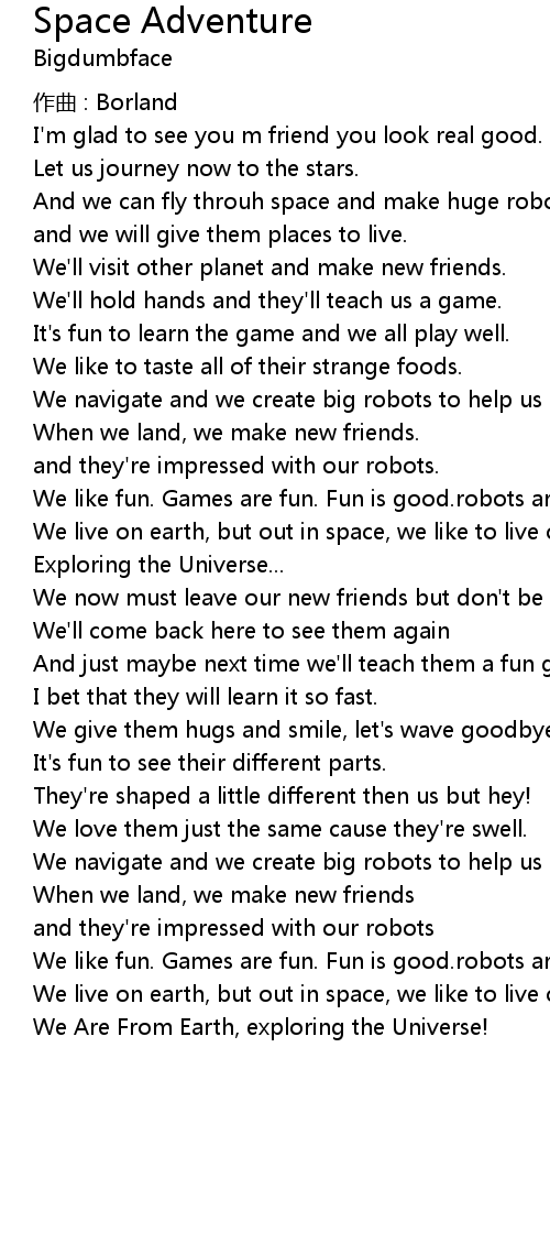 | We' ll visit other planet and make new friends. | |