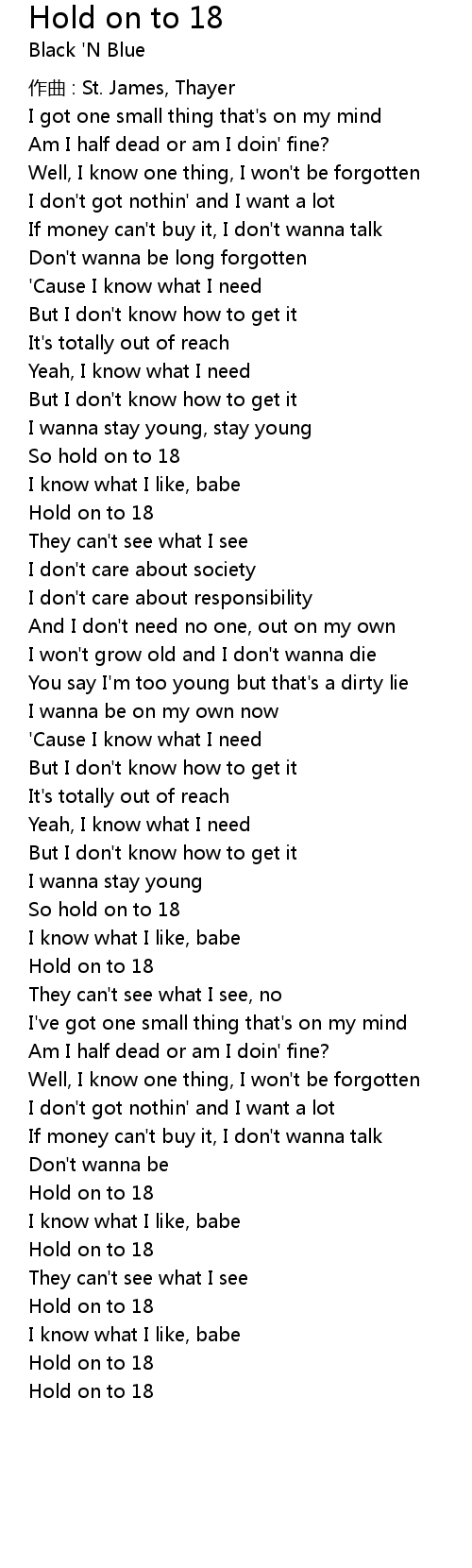 | Song | Hold on to 18 |