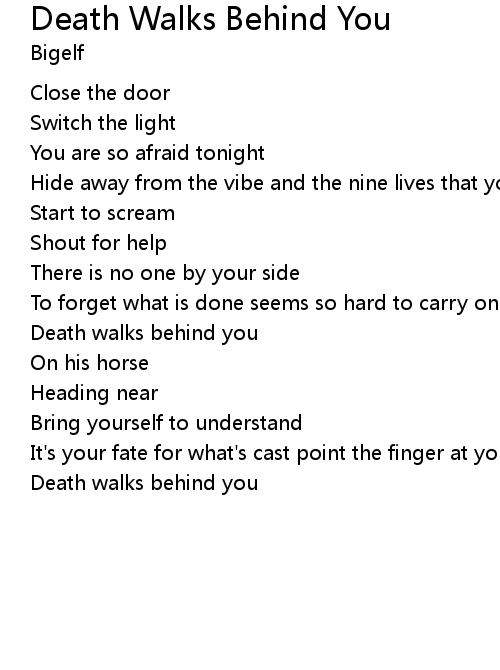 | Death walks behind you |