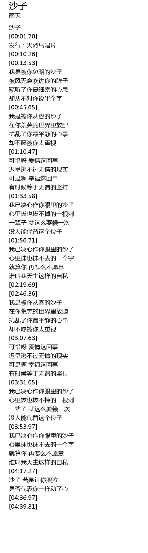 | [04:20.00] | 沙子 若是让你哭泣 |