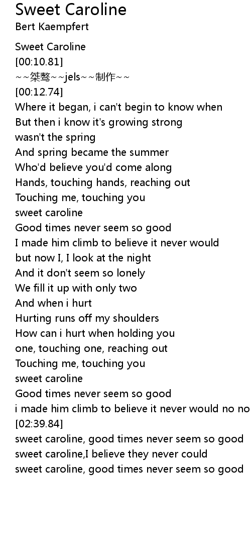 | [03:13.92] | sweet caroline, good times never seem so good |